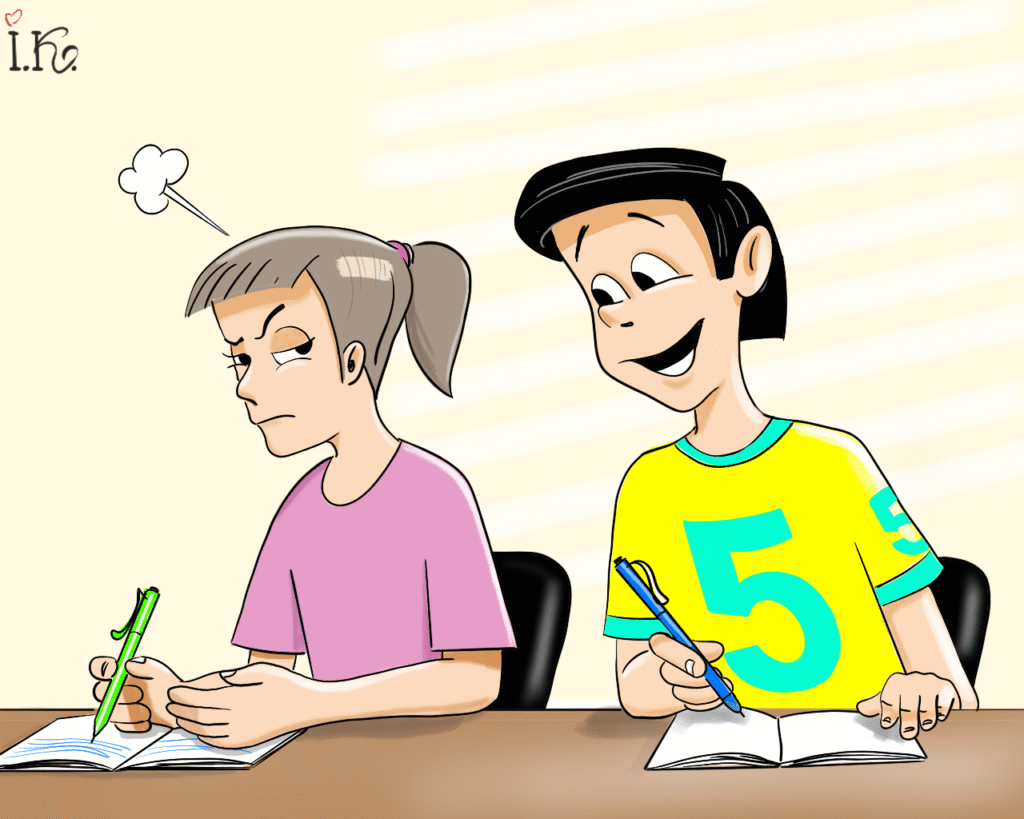 הוא פשוט העתיק את הפתרון מהשכן שלו – Er hat die Lösung einfach von seinem Nachbarn abgeschrieben